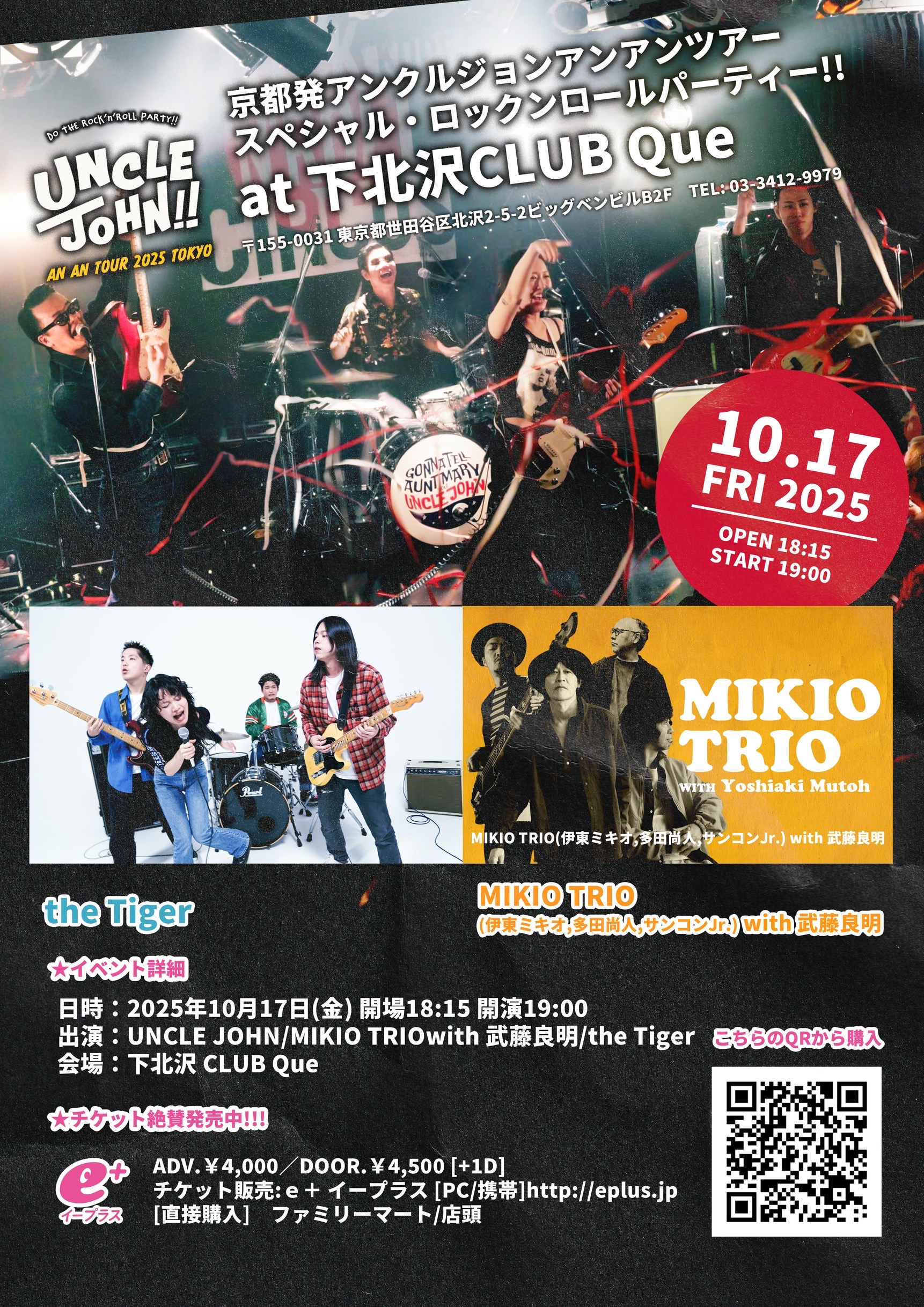 出演 :UNCLE JOHN /MIKIO TRIO with 武藤良明 / the Tiger